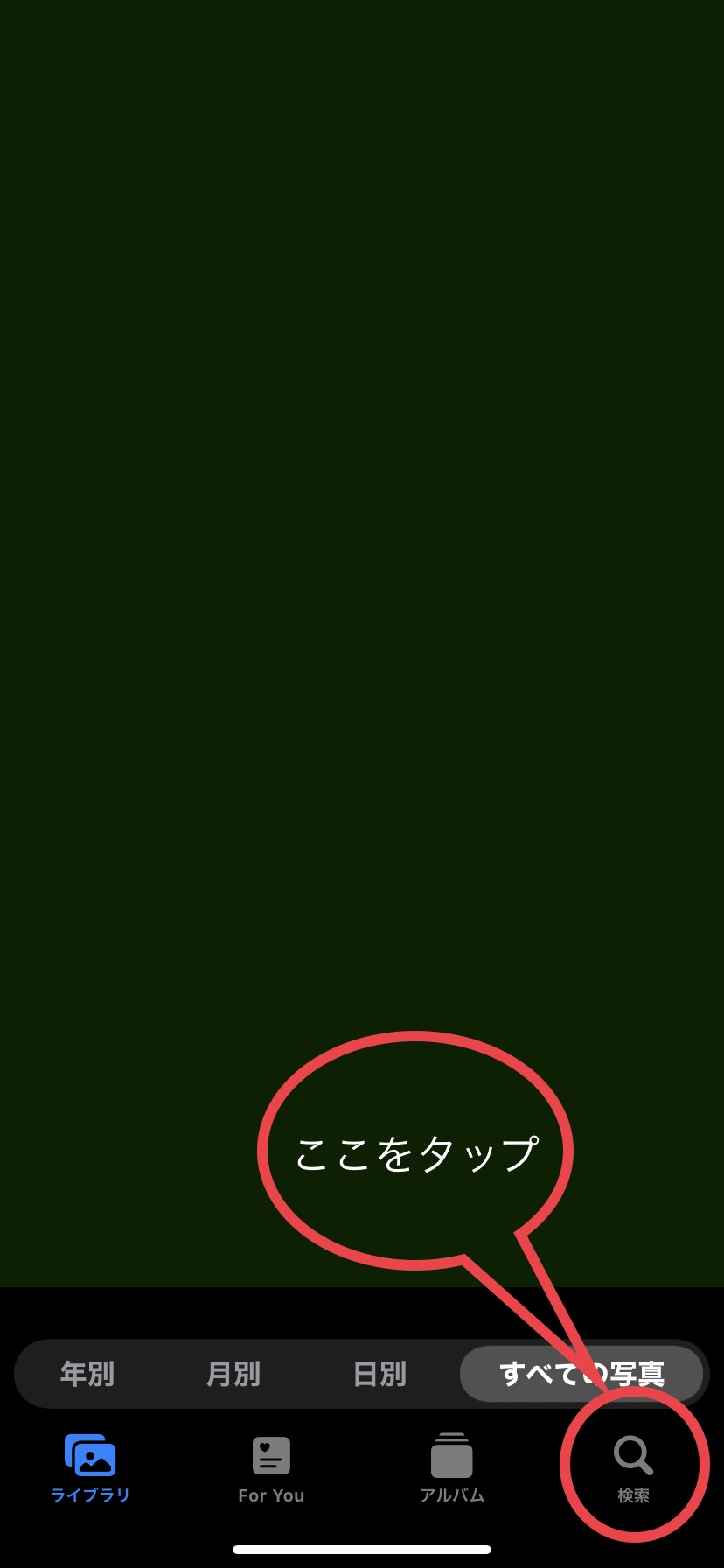 トップ画面の右下にある「検索」をタップ。