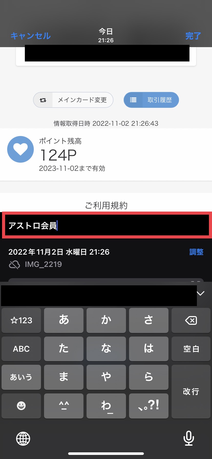 マイカードが表示された状態でスクショを取得。